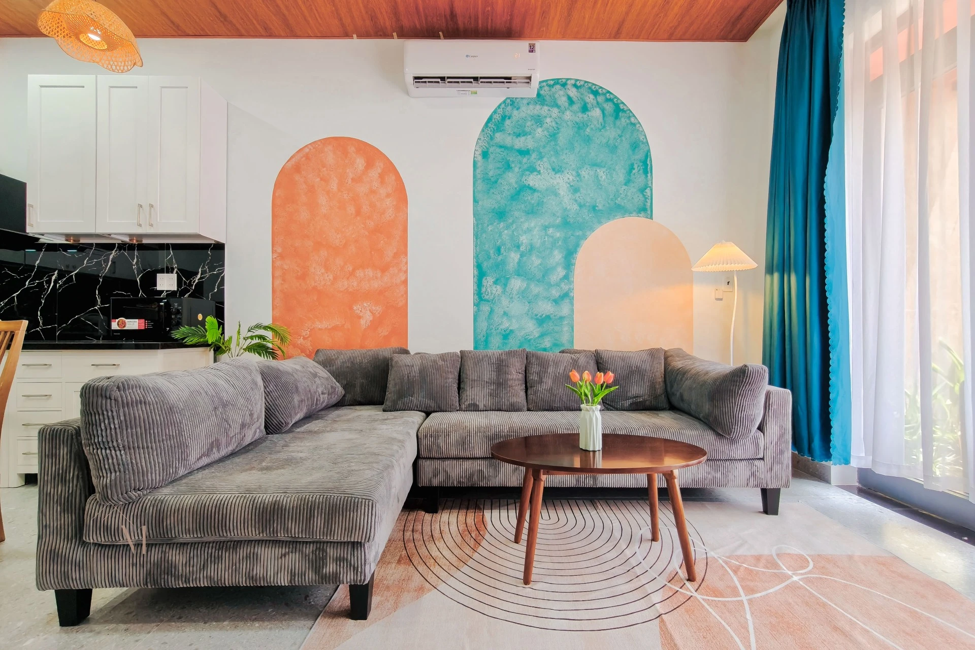 Step into the heart of the home – a beautifully designed living room with soft lighting, elegant arch décor, and a comfy sofa to relax after a day exploring.